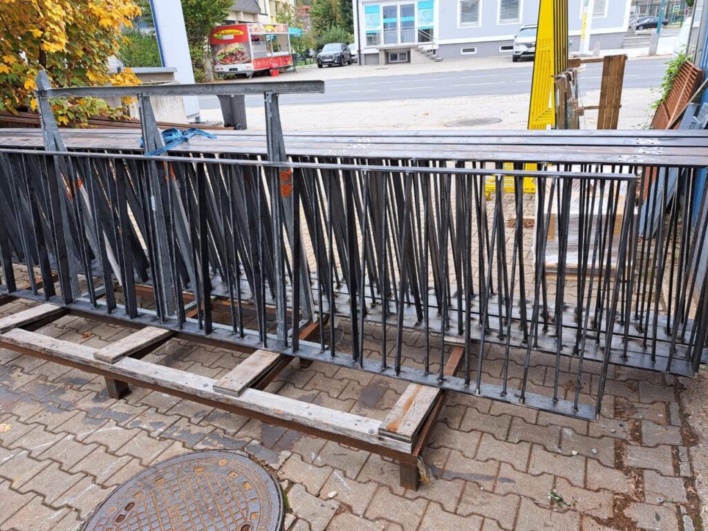 05.10.25 Die individuell designten Geländer für die Friedhofserweiterung Hof stehen bereit für ihre finale Veredelung durch die Pulverbeschichtung